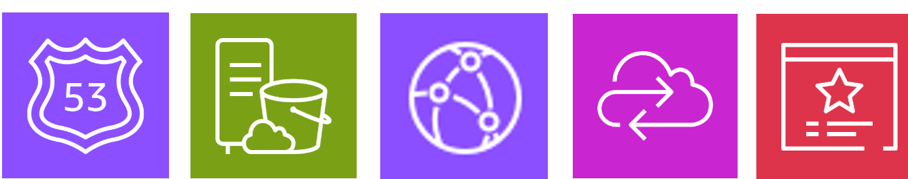 "Route 53 for domain and DNS services,S3 for web content, CloudFront for CDN and ACM for SSL"